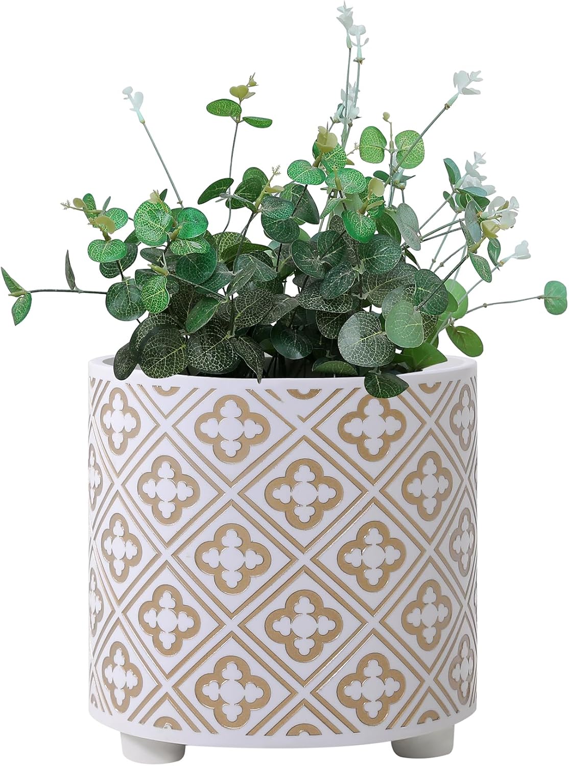 Transform your living space with this sophisticated 8-inch white resin fiberglass planter from Nacltlo. The striking medieval-inspired pattern creates an elegant contrast against the crisp white matte finish, making it a stunning decorative accent for any room. This versatile planter combines beauty with practicality—it's three times stronger than traditional ceramic and remarkably lightweight, perfect for both indoor and outdoor use. The durable construction resists cracking in challenging weather, while the built-in drainage hole ensures optimal plant health. Whether showcasing lush greenery, vibrant flowers, or architectural succulents, this cylinder planter provides the perfect foundation. Its timeless design seamlessly blends with various decor styles, from contemporary to classic. The generous size accommodates medium-sized plants while maintaining a sleek, space-conscious profile. Experience the perfect marriage of form and function with this expertly crafted planter that elevates your botanical display