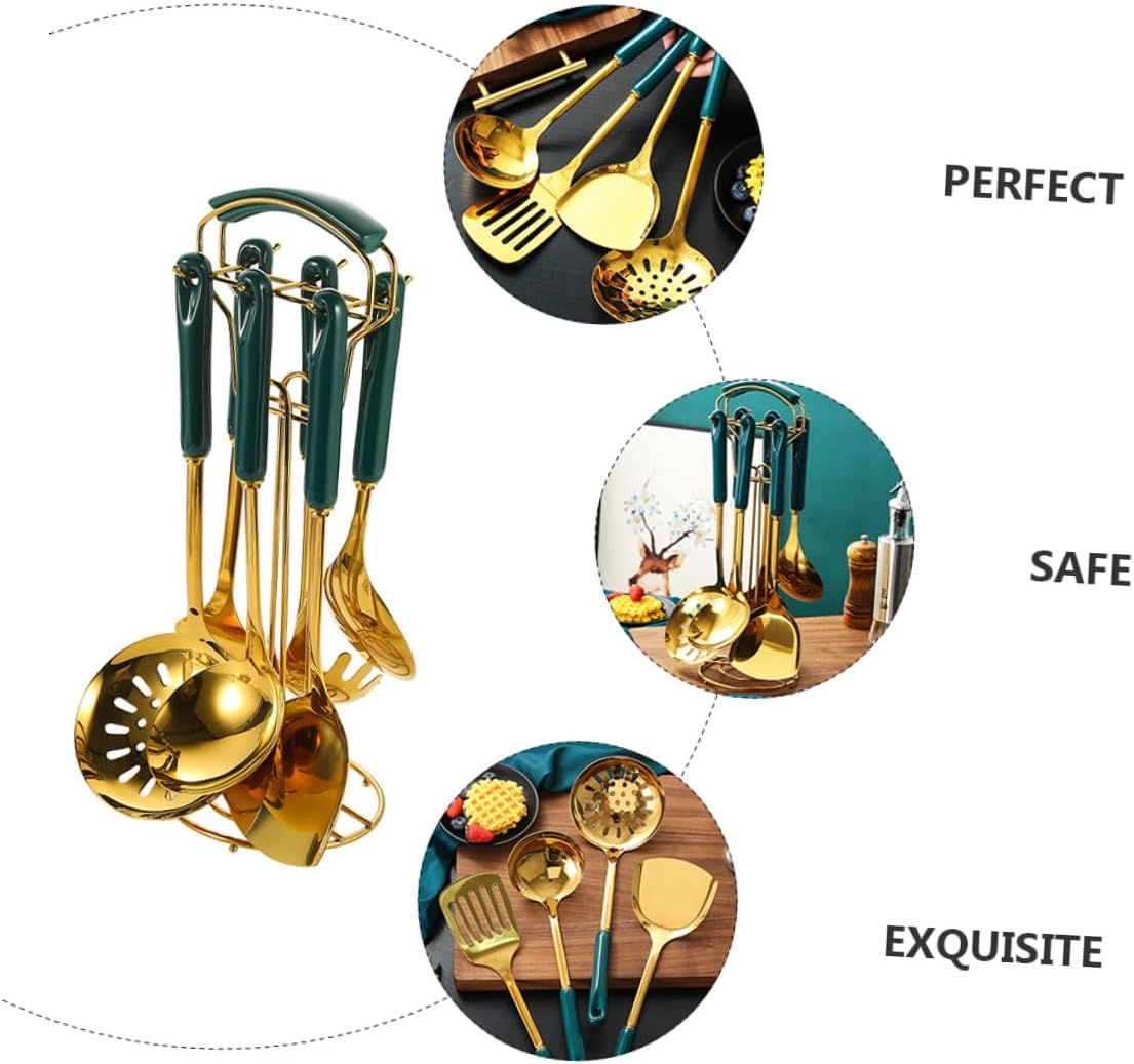 Package Include 1 1 x Colander 1 x Soup ladle 1 x Noodle strainer 1 x Spatula 1 x Rice scoop 1 x Pancake turner Features - Colander Size: Approx. 34.00x11.50cm; 13.39x4.53in kitchenware kit - Noodle Strainer Size: Approx. 30.00x7.50cm; 11.81x2.96in cooking spoon - Pancake Turner Size: Approx. 34.50x7.50cm; 13.58x2.96in non-stick utensils -Product Info:Stainless steel kitchenware set - Color: cooking utensils - Spatula Size: Approx. 33.50x33.50cm; 13.19x13.19in non-stick cooking tools - Rack Size: Approx. 39.00X13.00X13.00cm; 15.33X5.11X5.11in kitchen utensils - Soup Ladle Size: Approx. 31.00x9.00cm; 12.20x3.54in cooking utensils - Rice Scoop Size: Approx. 26.00x7.50cm; 10.24x2.96in stainless steel kitchenware - Material: Stainless steel, ceramic - This utensil set is made of food grade materials, and safe stainless steel kitchen utensil. - Simple and elegant design makes them appropriate for dinner table and kitchen heat-resistant cooking tools. - They are non-stick, stain resistant, and heat-resistant, so they are easy to clean and healthy for your life cookware kitchen gadgets.Goods Informationkitchen cooking utensils Different dishes cooking needs different tools, the spoons can help you to make delicious dishes well.stainless steel kitchen utensil They are always the right tools for any kitchen task.heat-resistant cooking tools The spoons or spatulas are .stainless steel kitchenware This utensil set can be used for many purposes: stir, mix, strain, whisk