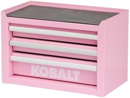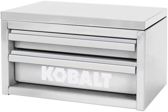 Introducing the portable storage system constructed with impact-resistant polymers to handle any environment. The mini tool box holds up to 5 lbs per drawer to keep all your equipment organized. The tool box is compatible with the full line of Kobalt modular storage boxes and accessories. Real mini size Durable powder coated finish Aluminum drawer trim, friction slides Magnetic drawer locking mechanism