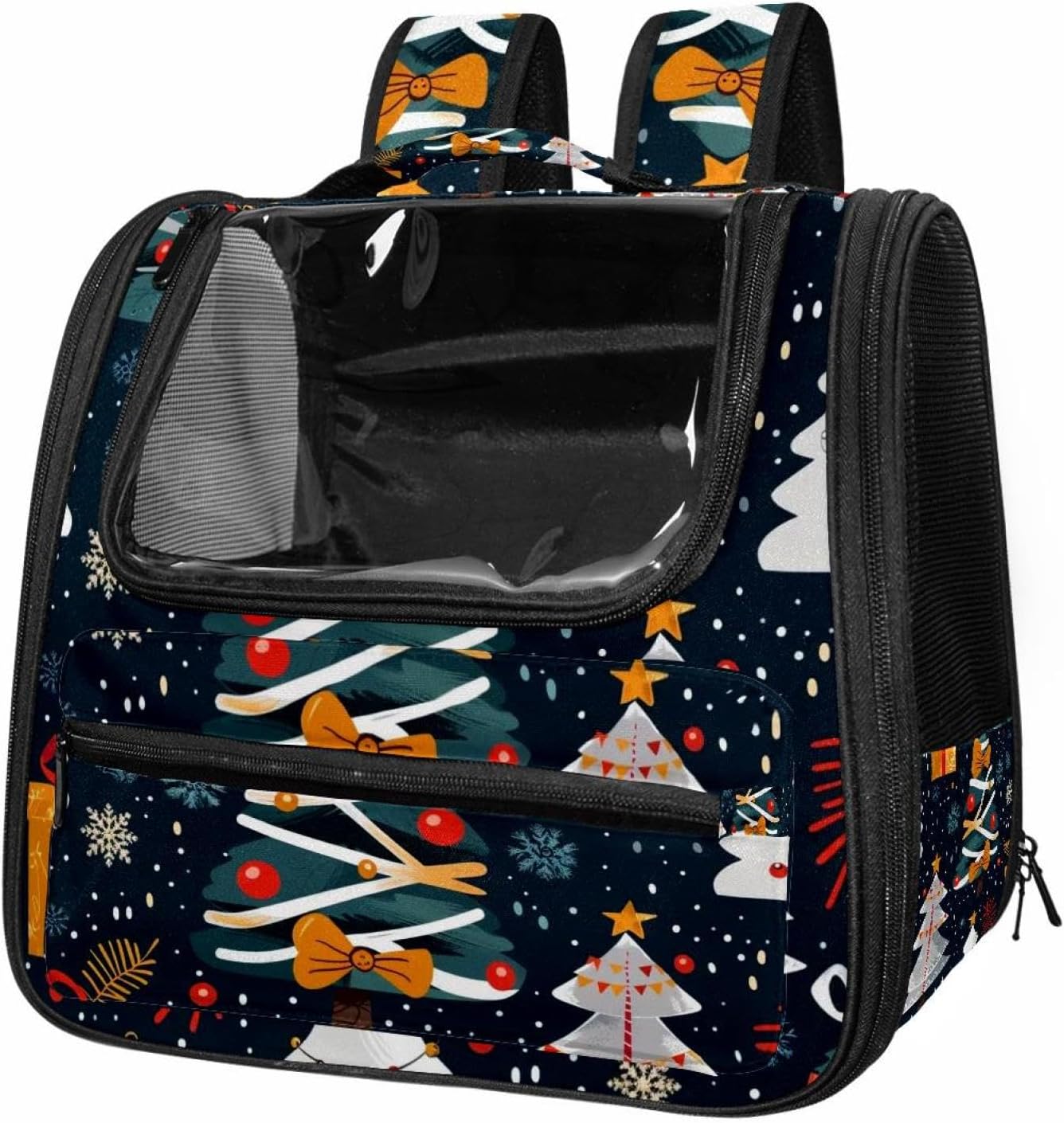 Well made: Cat Backpack Carrier is made from 900D oxford fabric, pp webbing, velvet, nylon, which is very sturdy, environmentally friendly and breathable. Not easily scratched by pet’s claws, pet backpack carrier is SAFETY & ANTI-SCRATCH. The back padding will give you a comfortable and breathable experience. Ventilated Backpack: With a breathable window in the front, this pet backpack allows cats to enjoy the sun without feeling stuffy. There are two side pockets and one big front pocket, and you can take foods or toy for your kitten pet. It is big enough for cat to turn around, and there are side pockets and hook holes, you will enjoy the greatest convenience when taking your cat out. Perfect size: Cat carrier is 15.75x9.84x13.78in/40x25x35cm. Fits most small/medium sized cat, dog, and pet. Quality fleece bed provide a comfortable place for your pet. Lightweight and easy to carry to all places. Built-in harnesses keep your naughty friends from escaping. Removable cosy mat for easier cleaning and let your pet enjoy it inside. Easy to carry: The adjustable shoulder strap of pet carrier bag help you hands-free carrying and makes it the most safe and convenient pet carrier bag for your travel. Seat belt design provide pets with safety protection throughout the trip. Pad protection keep your pets comfortable during travel. Unique Design: Innovative inside graphic design gives you a stereoscopic 3D visual experience. You also send us the photos you interest to make your unique dog or cat carrier. Pet bag is also a amazing gift for pet lover.