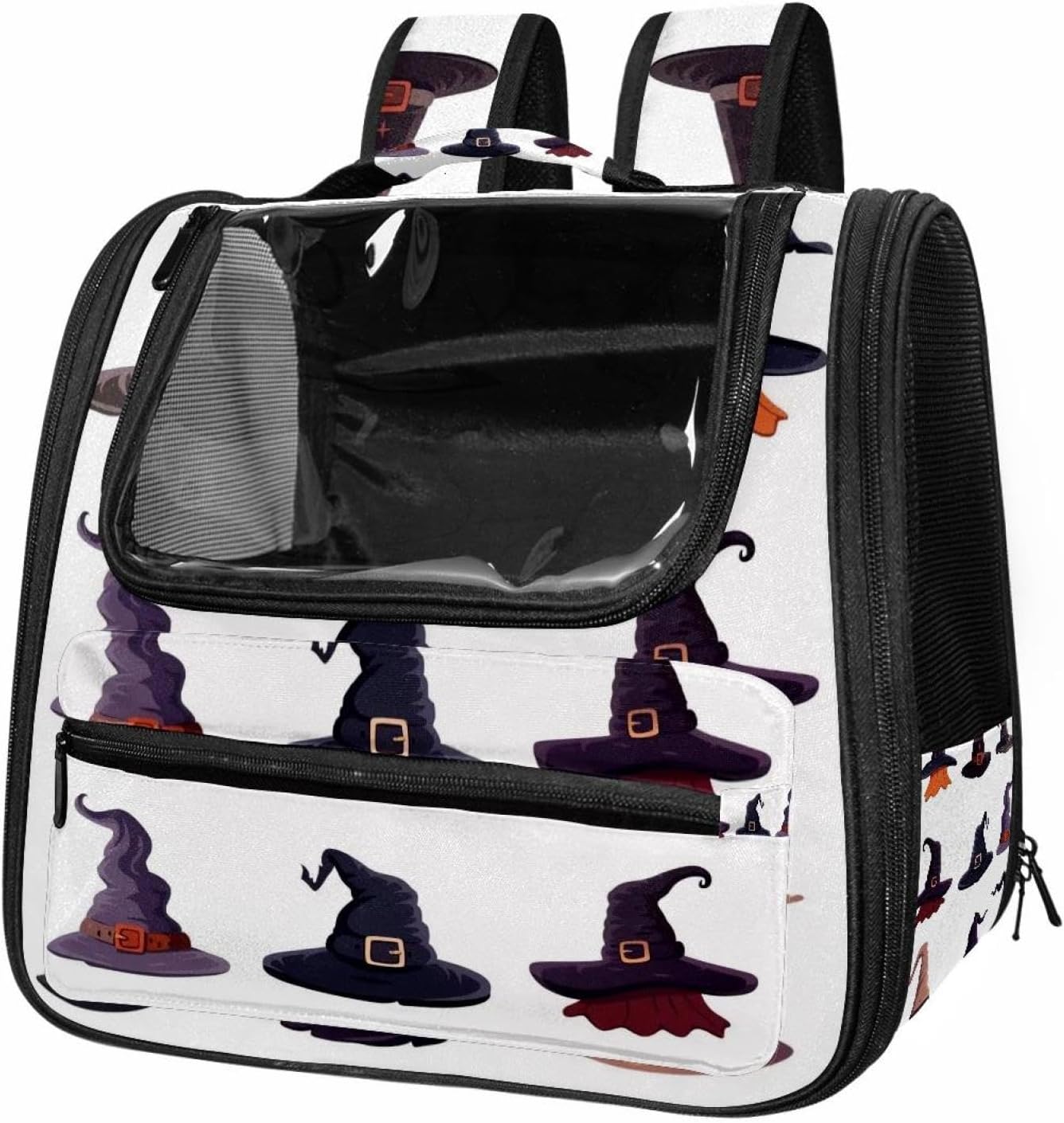 Well made: Cat Backpack Carrier is made from 900D oxford fabric, pp webbing, velvet, nylon, which is very sturdy, environmentally friendly and breathable. Not easily scratched by pet’s claws, pet backpack carrier is SAFETY & ANTI-SCRATCH. The back padding will give you a comfortable and breathable experience. Ventilated Backpack: With a breathable window in the front, this pet backpack allows cats to enjoy the sun without feeling stuffy. There are two side pockets and one big front pocket, and you can take foods or toy for your kitten pet. It is big enough for cat to turn around, and there are side pockets and hook holes, you will enjoy the greatest convenience when taking your cat out. Perfect size: Cat carrier is 15.75x9.84x13.78in/40x25x35cm. Fits most small/medium sized cat, dog, and pet. Quality fleece bed provide a comfortable place for your pet. Lightweight and easy to carry to all places. Built-in harnesses keep your naughty friends from escaping. Removable cosy mat for easier cleaning and let your pet enjoy it inside. Easy to carry: The adjustable shoulder strap of pet carrier bag help you hands-free carrying and makes it the most safe and convenient pet carrier bag for your travel. Seat belt design provide pets with safety protection throughout the trip. Pad protection keep your pets comfortable during travel. Unique Design: Innovative inside graphic design gives you a stereoscopic 3D visual experience. You also send us the photos you interest to make your unique dog or cat carrier. Pet bag is also a amazing gift for pet lover.